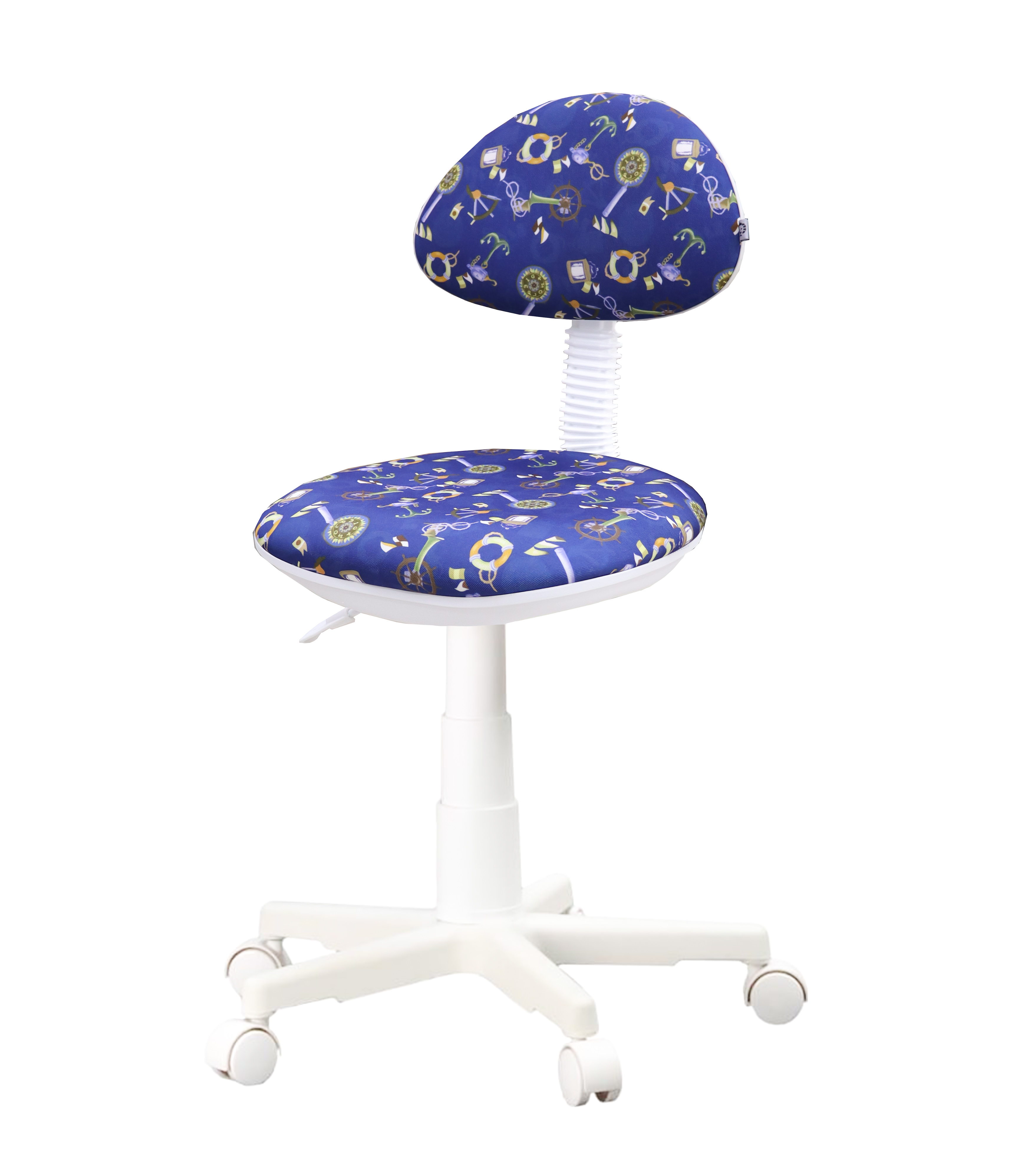 —Кресло Логика (пластик WH,Ткань,KiD'S,9 (якоря фон синий),О,PL 540, б/подл, ролик белый)