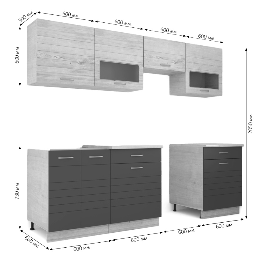 —Кухня РУМБА №5/1 Ясень/Графит
