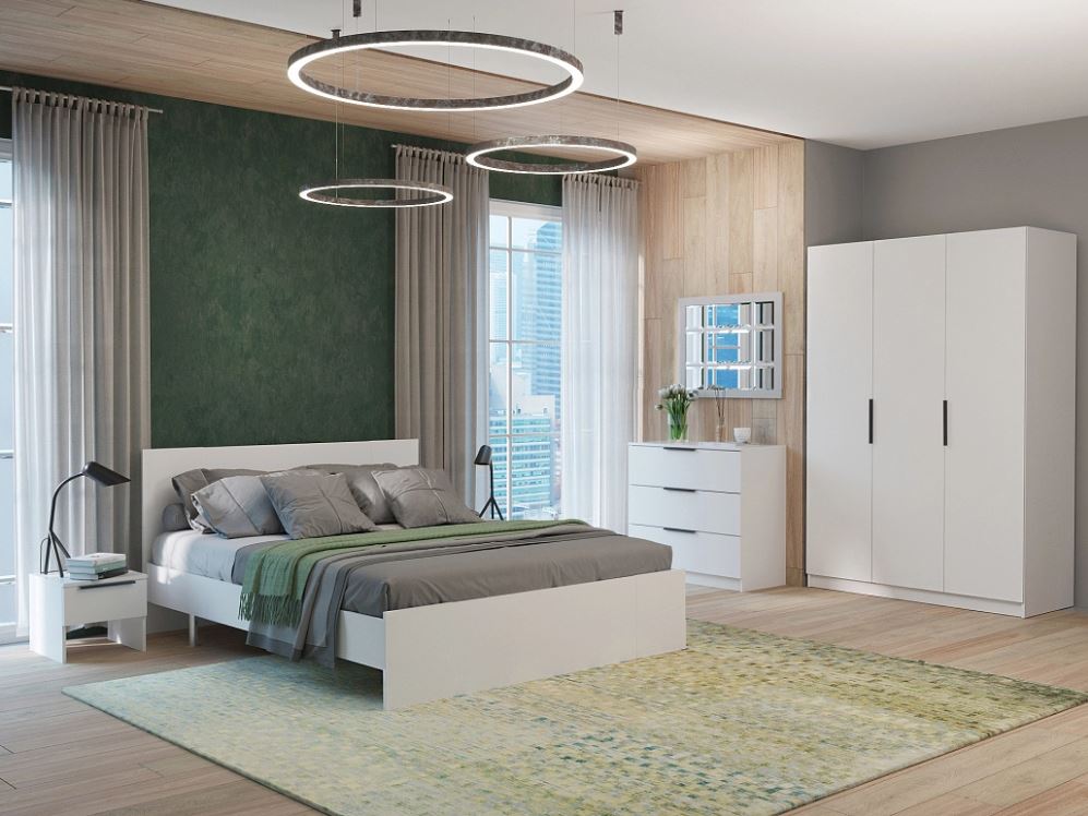 Кровать с лаконичным дизайном и универсальным белым цветом.